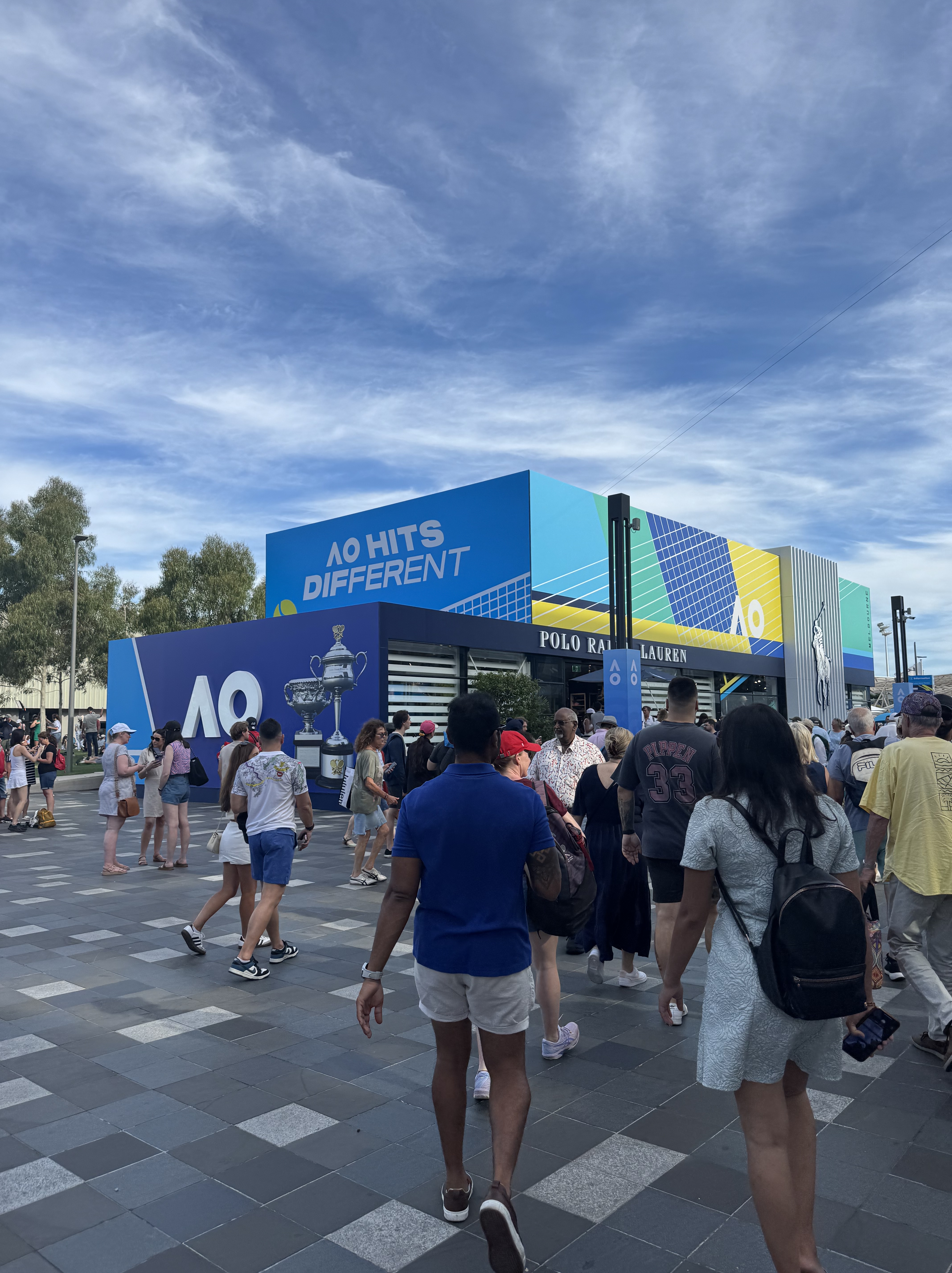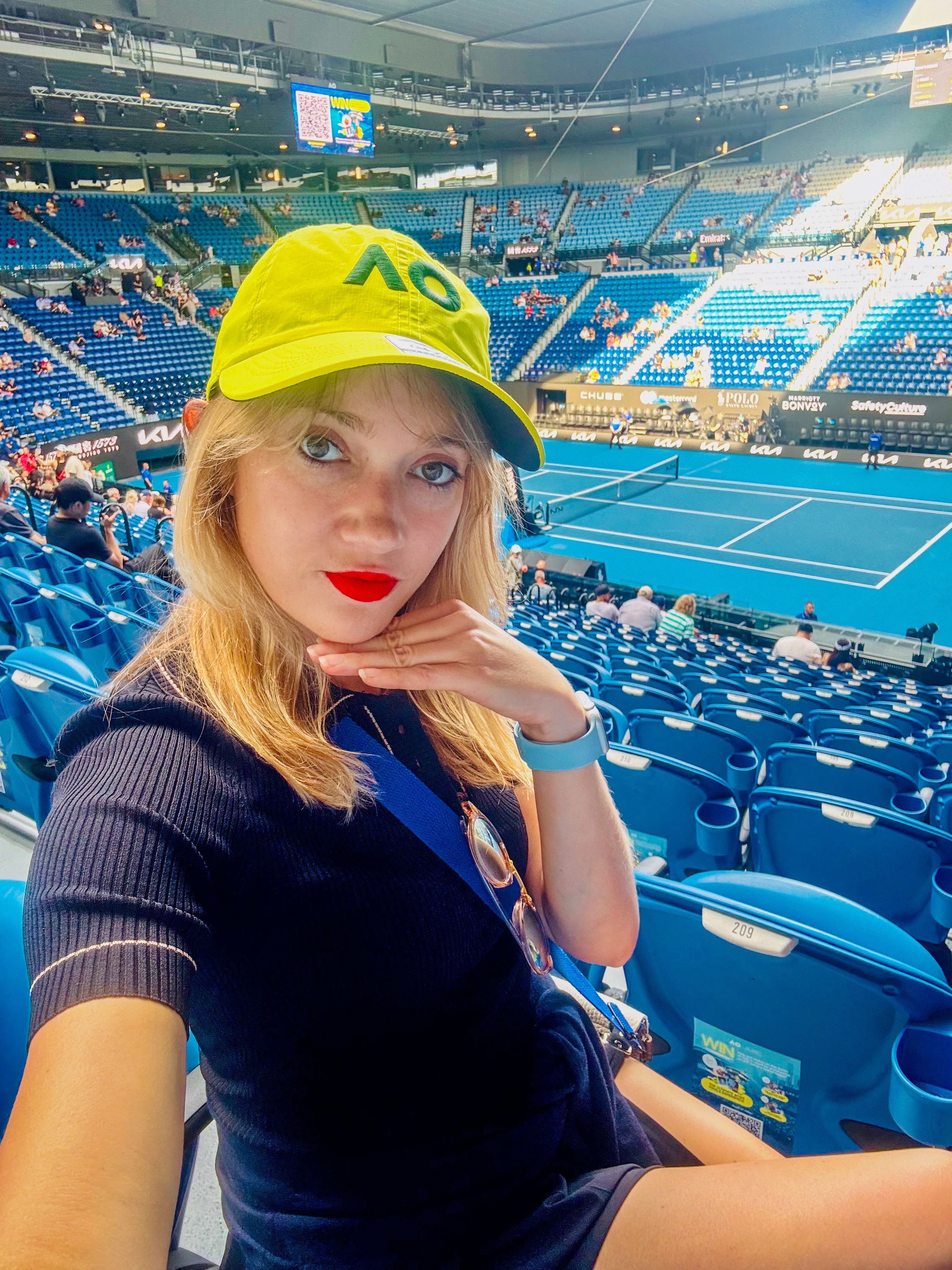 The match started at 7:00 p.m., but I got there at 5:00 p.m. so I could watch some of the other matches from the screens outside and just wander around. I obviously bought a hat. I did some people watching. I judged people’s outfits. I thought Australians would dress better, but I was wrong. Australians: they’re just like us (loud and lacking in fashion taste).