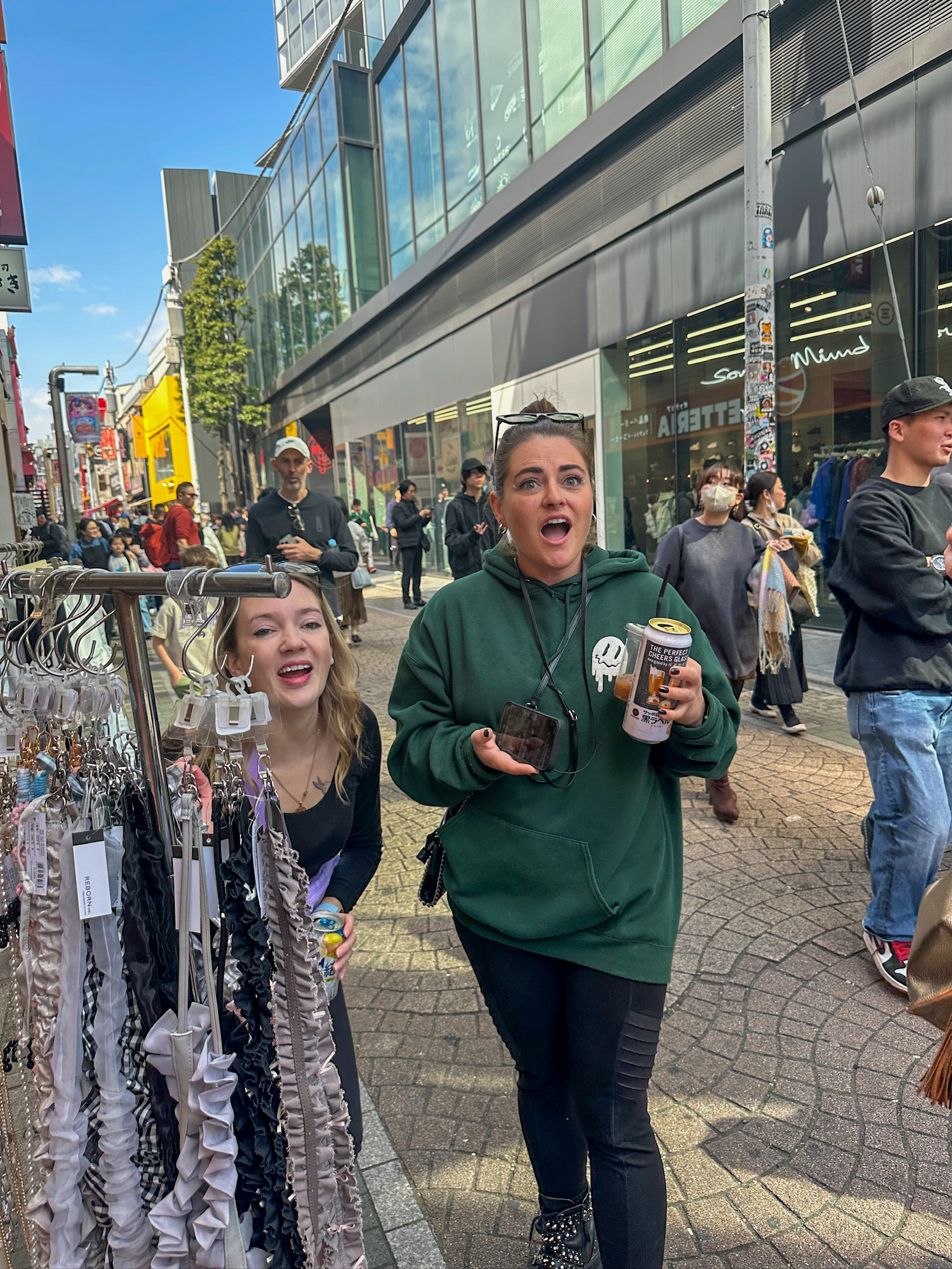 The first full day in Tokyo was a blast. I met up with several of the gals that I met on the snow trip who were also in Tokyo and we went around some of the more popular and eccentric areas in Shinjuku. One of the gals tried fish for the first time. We drank seltzers and beers from 7-Eleven on the streets, because apparently that is fine in Japan. That surprises me given all of their other rules. For example, I had to apply and send ample documentation in order to bring my ADHD medication with me to Japan. You also can only bring certain ADHD medications. Adderall isn’t allowed, even with permission. Straight to jail. Right away. They also never jaywalk.